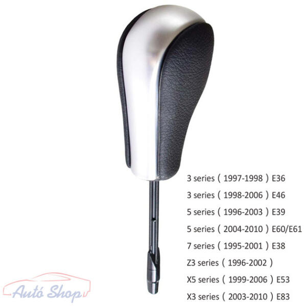 BMW automata váltókar ezüst-bőr E36, E39, E46, E38, E53, E60, E61, E83. Minőségi utángyártott ezüst-bőr automata váltógomb!